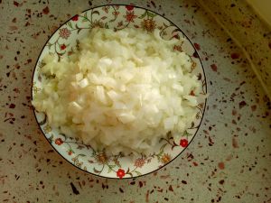 一点黄油炒熟洋葱,胡萝卜,鸡肉泥