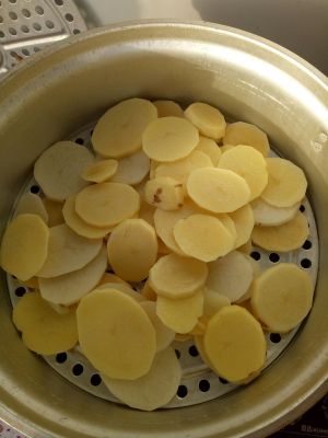 把土豆去皮,洗净,切成片,上锅蒸熟
