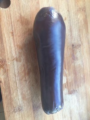 松下NU-JK200W烤盘,放得下两条大茄子,也可以挑小的三条。洗净,去蒂,擦干,刷油刷均匀。