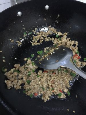 热锅热油加葱蒜爆香,再倒入肉末和剁椒炒至变色