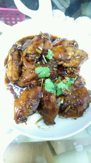 常规腌制鸡翅。(酱油蚝油料酒蒜少许,因为是一道收汁菜,所以口味会重一点,腌制的时候不要太咸)