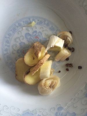 热锅冷油爆香葱段,姜片,六立花椒粒。