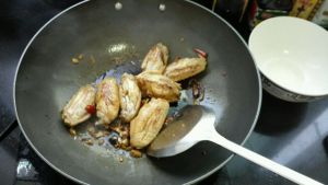 小火把鸡翅煎炸至金黄色