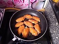 把腌制好的鸡翅抖掉蒜末,放锅里面煎。