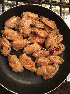 锅内倒入油炒鸡翅,炒至黄色,放入盘中备用。