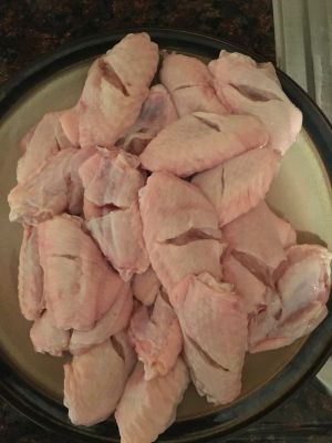 先将鸡翅洗干净划口并腌制20分钟左右,里面放入料酒3汤匙,多放点也可以。(我给里面放的是水果酒,家里没料酒~)酱油3~5汤匙、适量黑胡椒。(喜欢吃辣的话,在腌制时可以放点辣椒面)