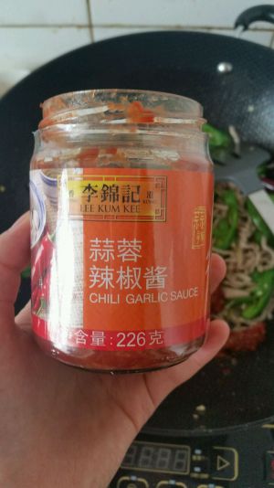 加一勺蒜蓉辣椒酱(可以不加),放味精,盐调味