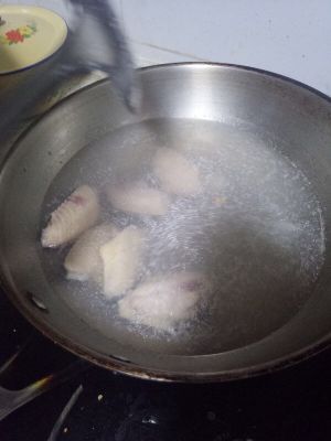 锅内水煮沸,倒入鸡翅,焯一下,去腥,煮半熟就可以