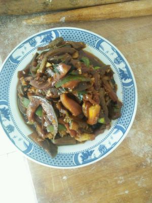 先把茄子下锅炸,变色了,捞出来,在放入西红柿辣椒,炒锅,然后放入调好的料,最后倒入茄子
