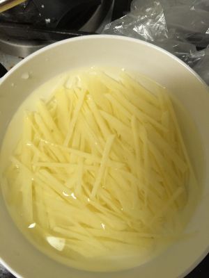 土豆去皮切细丝后放入清水中洗去一部分淀粉