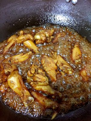 放入可乐(可乐漫过鸡翅就够) 待可乐收汁,放入少许生抽加水(提前兑好)