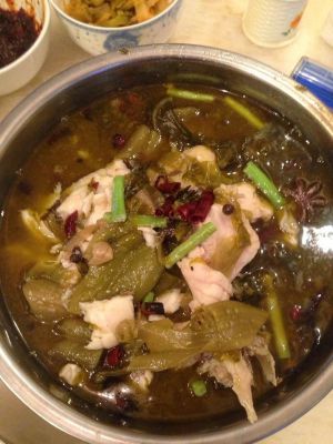 这道酸菜鱼的精髓在于酸菜的好坏。可以多用泡姜和泡椒提问。