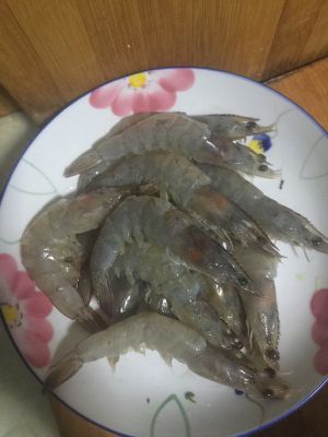 先把虾放在水中汆烫一下,青虾变红虾,捞出过凉水。