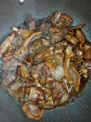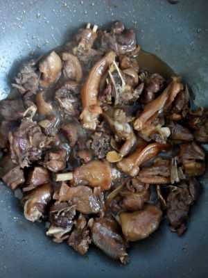 加水,刚好没过鹅肉就行。盖上盖子焖,中途不时翻一下。(不想焖太软可以加少点水)