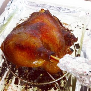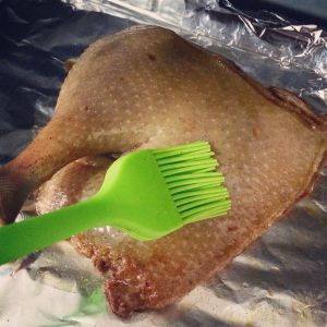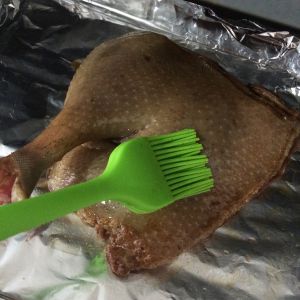 刷一层脆皮水然后进烤箱70度热风循环风干10分钟。此步骤重复4次。