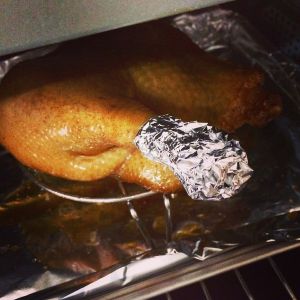 用锡纸包住易焦的部位,温度调至230度热风循环15分钟。各家的烤箱脾性不一样所以还是要时刻关注烤制情况,别烤焦哦。