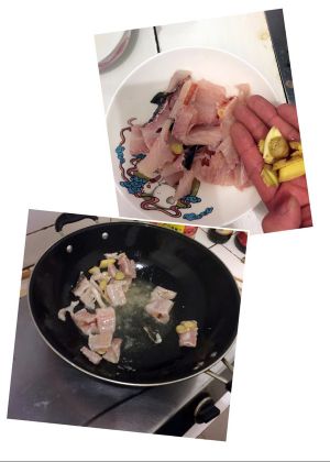 然后加入姜片蒜片爆香