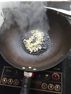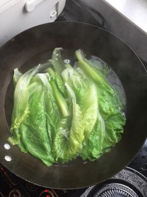 生菜洗净备用,蒜瓣拍碎
