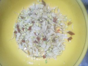 在锅放入适量水,等水沸腾讲藕片血旺平菇放入锅中煮熟加入适量食盐,大概五分钟之后掏出放入一个大碗中,铺在底部