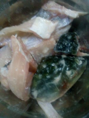 水开后熬几分钟,尝味道调味后加入鱼头鱼骨煮熟。