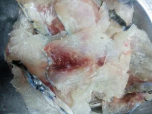 草鱼分两部分,鱼片部分用白酒、料酒、姜丝、大葱段、盐、淀粉一勺腌制30分钟。