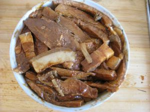 姜泥、南乳、生抽、老抽、料酒、五香粉拌匀,再加入切好的肉片拌匀。