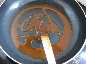 锅中做油,将抹好蜂蜜的肉块下锅炸至褐色捞出,