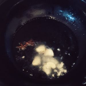 锅内倒少许油,烧热之后放入八角姜蒜爆香。