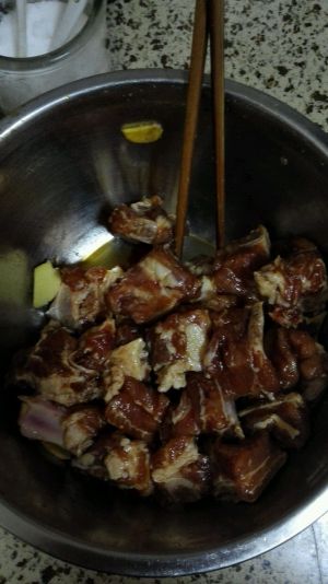 把排骨用料酒,生抽,盐,姜腌制30分钟