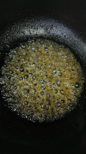 锅内放入白糖和水