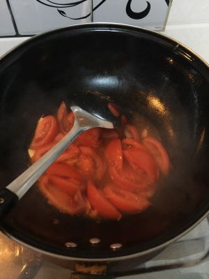 倒入番茄丁,少许盐,少许糖(喜欢吃咸鲜口味的同学可以不放糖),大火炒制,如果买的番茄是比较干的那种,可以加入少许饮用水。