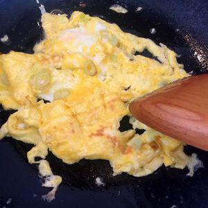 倒入蛋液,不要马上翻炒,稍等微黄再翻炒