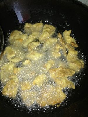 注意加入淀粉时候立即炸要不肉会把水吸干!炸的时候会嘣