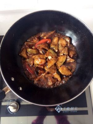 重新起锅,放入姜蒜爆炒出香味,倒入生抽,盐,水淀粉,熬的粘稠把茄子放进去,翻炒几下,出锅。