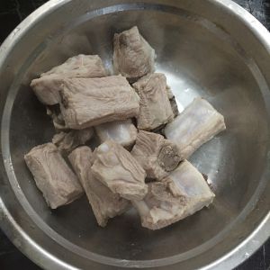 生姜,料酒,盐,排骨放入冷水焯一下,焯掉血水后,用冷水洗干净备用