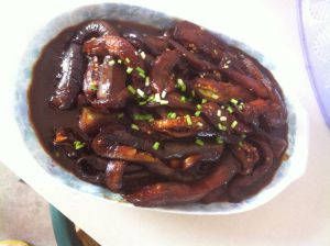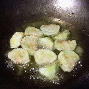 油锅预热 大火至中火炸至半熟。捞出后控油 再次大火入锅复炸至金黄捞出 。然后另起锅加入蒜末炒香 加入尖椒炒 把混合好的汁倒进 把炸好的茄子块倒入,快速翻炒后即可出锅。