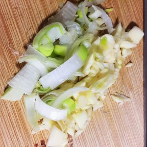 葱姜蒜切片,另取一瓣蒜切碎,小葱切碎
