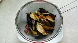 炸到茄子表面发黄就熟了,也可以尝一尝就知道熟没熟。捞出。