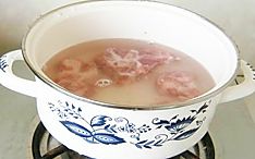 骨头凉水下锅,煮到沸腾,撇出浮沫。