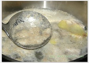 50分钟后,下入大枣、山药,继续炖20分钟左右,山药很易熟,所以不要下得太早。最后加入适量盐,继续煮5分钟即可。