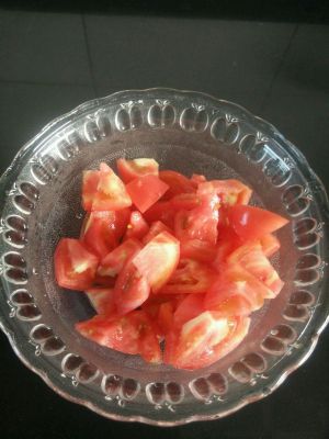 番茄洗干净,切小块。