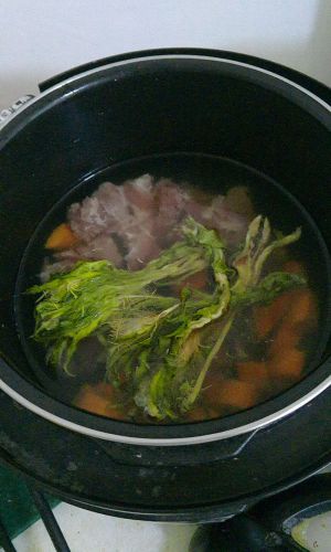 霸王花,胡萝卜放进排骨里,加入过面的水,再放点醋(放醋有利于把骨头的营养物质逼出汤里,这样的汤钙质更丰富(⊙o⊙)哦),然后放电高压锅,按沸腾炖,一个半小时后,美味又柔滑的霸王花排骨汤就好了!记得开盖后加盐调味哦O(∩_∩)O~~