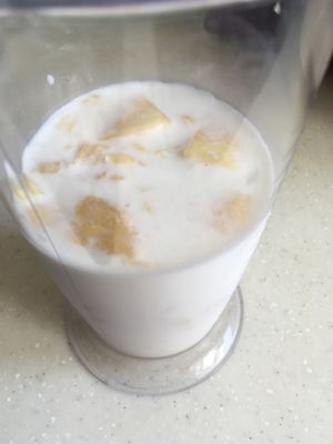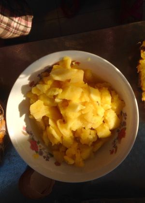 一个菠萝分了三种吃发~直接水果片;留一点炒饭;用搅拌机打了一杯奶昔。边喝边继续劳动!