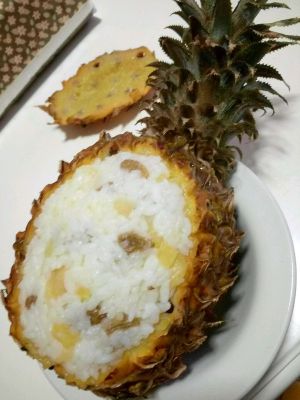 炒至软糯起锅,放入掏空的菠萝壳中,由于加了椰浆米饭会相对比较润,喜欢吃润点的朋友这时候就可以了