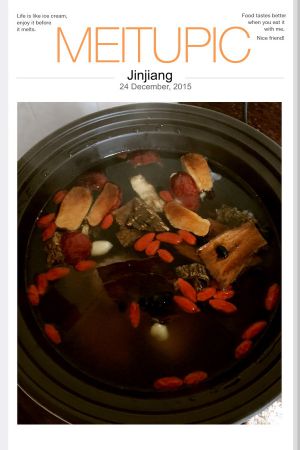 4,砂锅中注入清水烧开,放入所有材料,淋入料酒 5,我用的电砂锅,大概一个小时就熟了。 6,起锅前加盐