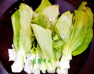 在肉快卤好的时候,可以把青菜用开水焯熟,不用添加任何调料,肉汁就是最好的调料。