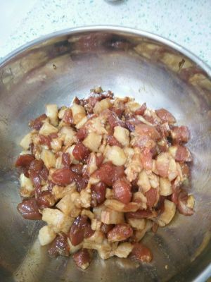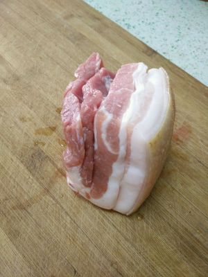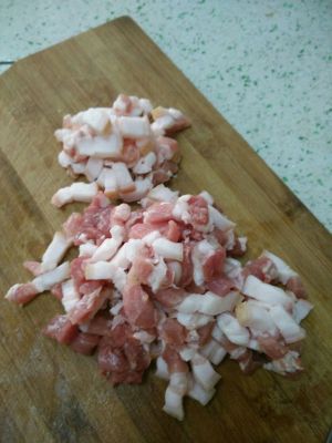 选上好的五花肉,要记得多买一块猪皮哦,这样煮出来的汤汁,才会有点粘稠感呀。。。口感就更好啦。。。 整块五花肉洗干净,和一大块猪皮一起捞去血水,然后冷水下锅,煮熟煮透。。。拿起来趁热把猪皮切成丁,还有五花肉切成小块。。。就像这样。。。猪皮要趁热切哦,不然硬了不好切啦,偶的手手被烫死了 1切好的猪皮,晶莹剔透,漂亮吧。。