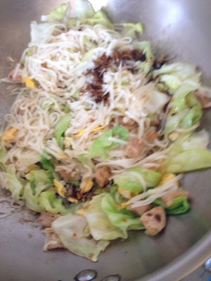 锅中油,比平常炒菜,量稍微大一些。油热后,放进红辣椒炸香后,放包菜翻炒,饭后放盐、鸡精、五香粉、麻辣鲜适量,然后倒酱油,最好是老抽,因为色重,看着菜颜色不错。大概4分钟就出锅。