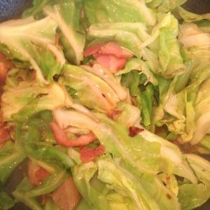 下入圆白菜,倒入2茶勺酱油,下入1/2茶勺糖,倒入2茶勺醋紧接着快速翻炒均匀。