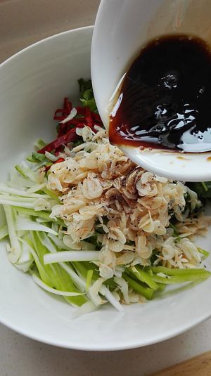 做法2:虾皮拌老虎菜